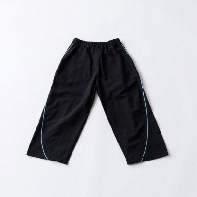 パイピングテープを挟んだストレートパンツ。テープは配色されており、さりげないアクセントが効いたデザインになってます。シルエット自体はベーシックなのでどのようなトップスに合わせても相性が良いです。"