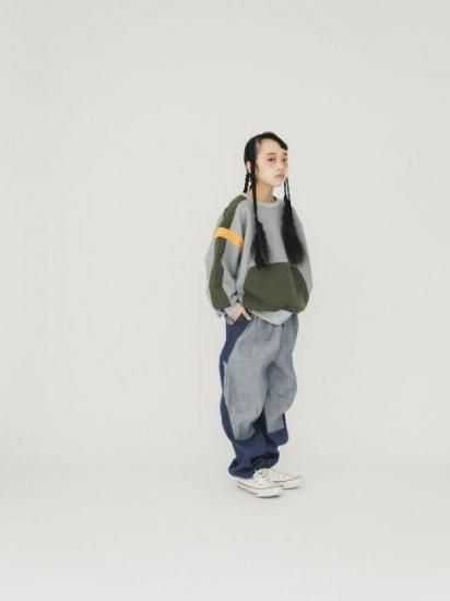膝にダーツを取ったデニムパンツ。デニムを表裏使いをして変化を付けてます。生地は反応染めをしているので色落ちが起こりにくくなってます。