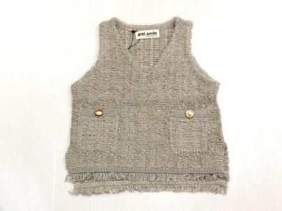 ツィードニットフリンジ付きベスト