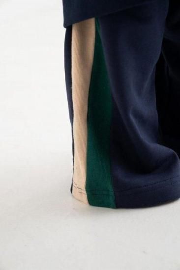 裾広がりのフレアパンツのスウェットパンツです。履いた時のシルエットがとってもきれいで履き心地もとっても良いです。サイドに入った2色使いのラインがポイント。