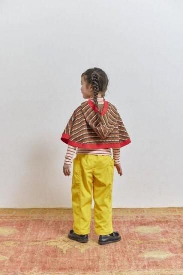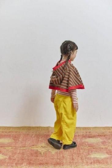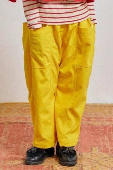 ストレッチ性が少しあるコーデュロイ素材のパンプキンパンツ。履き心地ささにシルエットの良さが好評で毎年人気の型です。中心に切替があり脇の立体的なポケットがポイント!ボタンの色とボタンの付け糸色にデザイナーのこだわりが効いています。