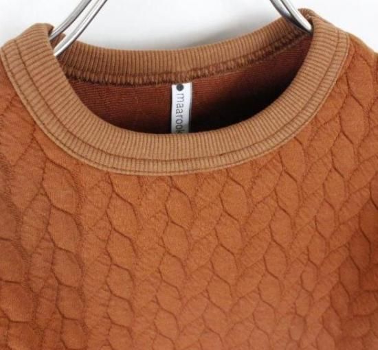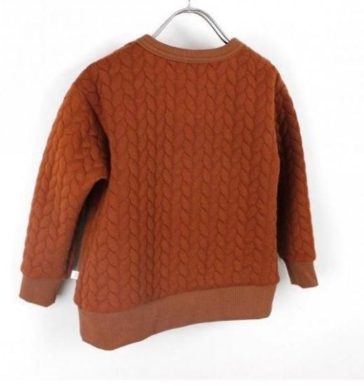 ニットの様なケーブル柄のふくれジャガードトレーナーです。