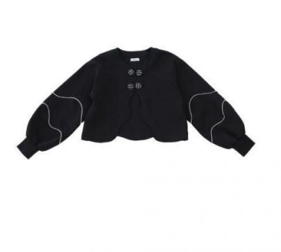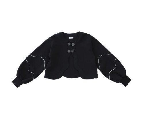 前身頃や裾、袖のパイピングなど、全体的に波打つようなデザインを施したボレロは、軽くシワになりにくいボンディング生地を使用。 少し肌寒い秋口にはカットソーの上に重ねて、本格的な冬の季節にはレイヤードアイテムのひとつとして合わせるなど、活躍する機会が多いのも嬉しいポイントです。くるみボタンで上品な印象に。
