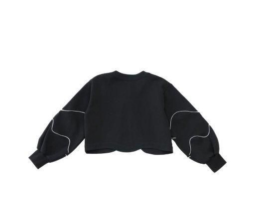 前身頃や裾、袖のパイピングなど、全体的に波打つようなデザインを施したボレロは、軽くシワになりにくいボンディング生地を使用。 少し肌寒い秋口にはカットソーの上に重ねて、本格的な冬の季節にはレイヤードアイテムのひとつとして合わせるなど、活躍する機会が多いのも嬉しいポイントです。くるみボタンで上品な印象に。