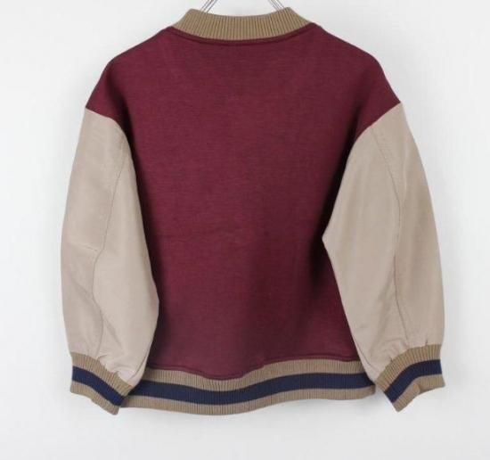身頃はダンボールニット、お袖はポリエステルツイルのスタジアムジャンパーです。ライトな仕上がりなので長い期間重宝します。